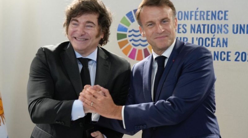 El encuentro tuvo lugar tras la asistencia del libertario al foro climático que se desarrolla en Niza, del 9 al 13 de junio, a pedido de su par francés, con quien mantiene un vínculo aceitado pese a las diferencias ideológicas.